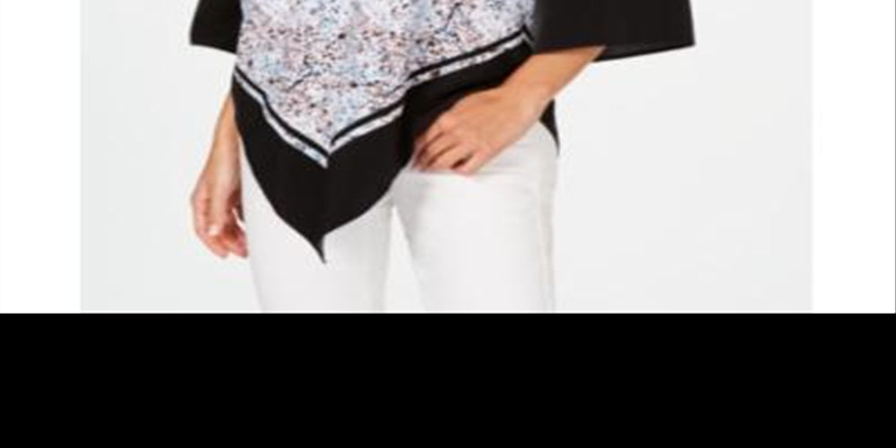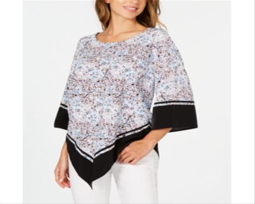 Alfani Women's Printed Poncho Blouse Blue/Brown Size Petite XL