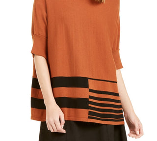 Alfani Women's Printed Poncho Sweater Brown Size Medium