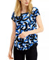Alfani Women's Printed Round Hem T-Shirt Black Size Petite Small