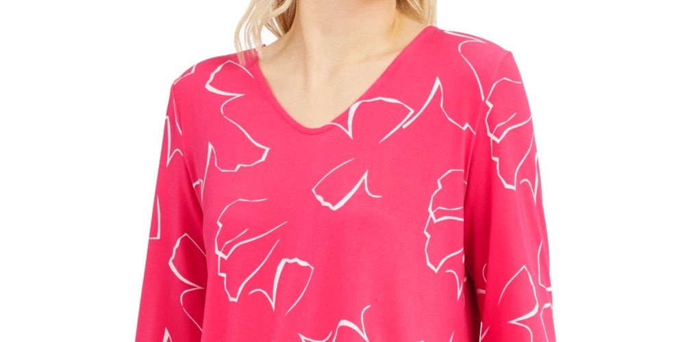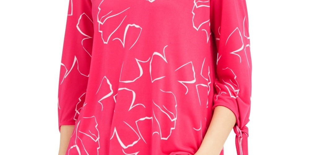 Alfani Women's Printed Tie Sleeve Top Pink Size Large