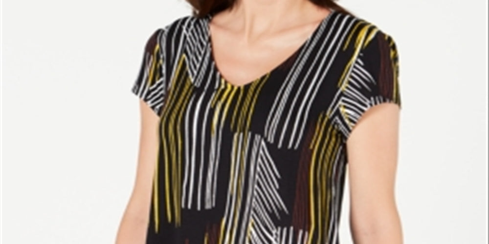 Alfani Women's Printed V Neck T-Shirt Black Size Small