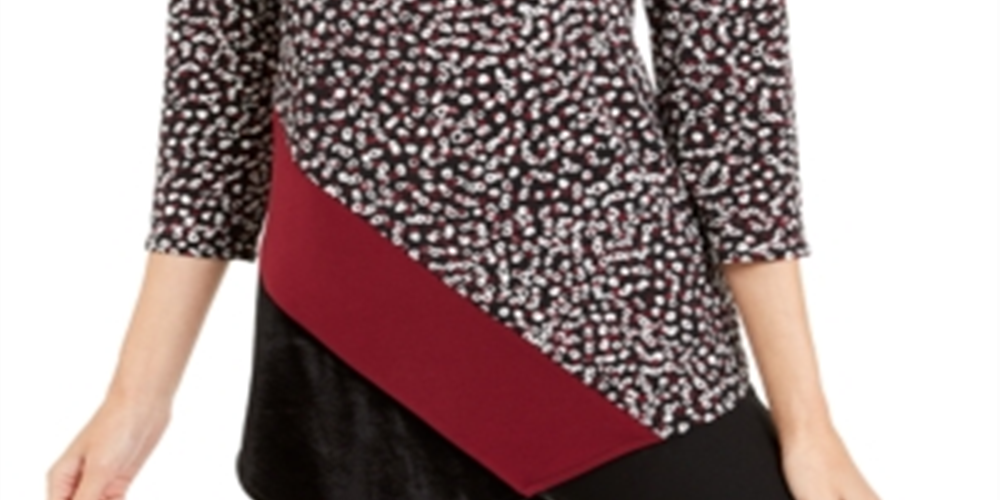 Alfani Women's Printed & Velvet Asymmetrical Top Black Size XX-Large