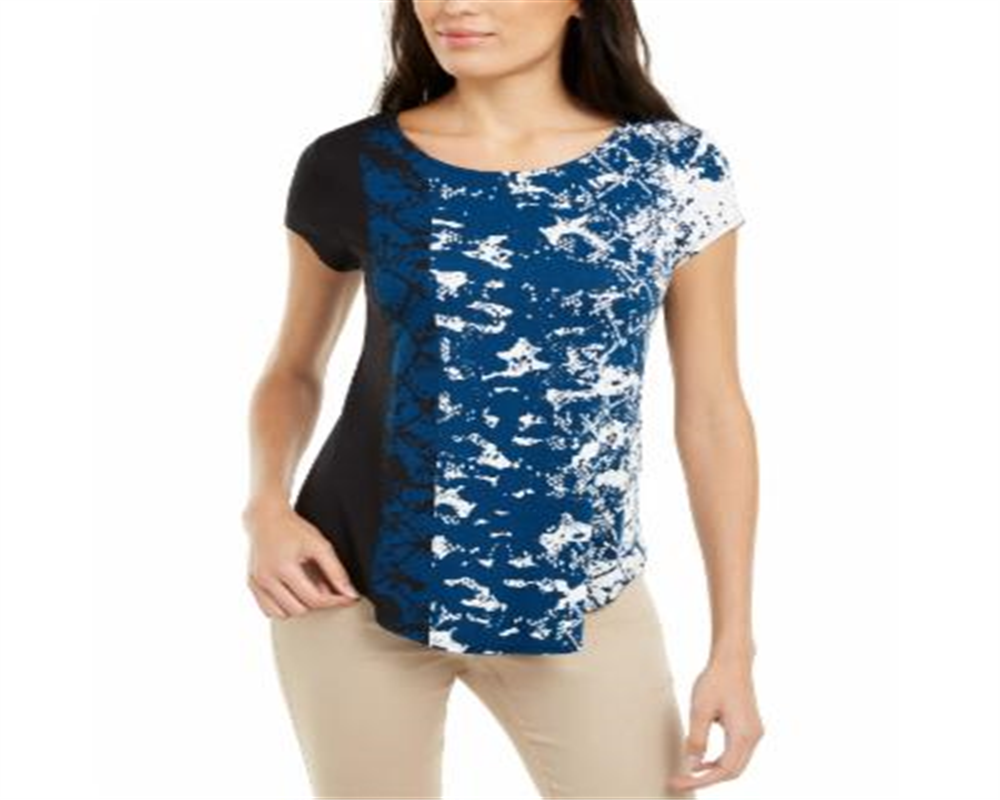 Alfani Women's Python Flank Teal Printed T-Shirt Blue Size Small