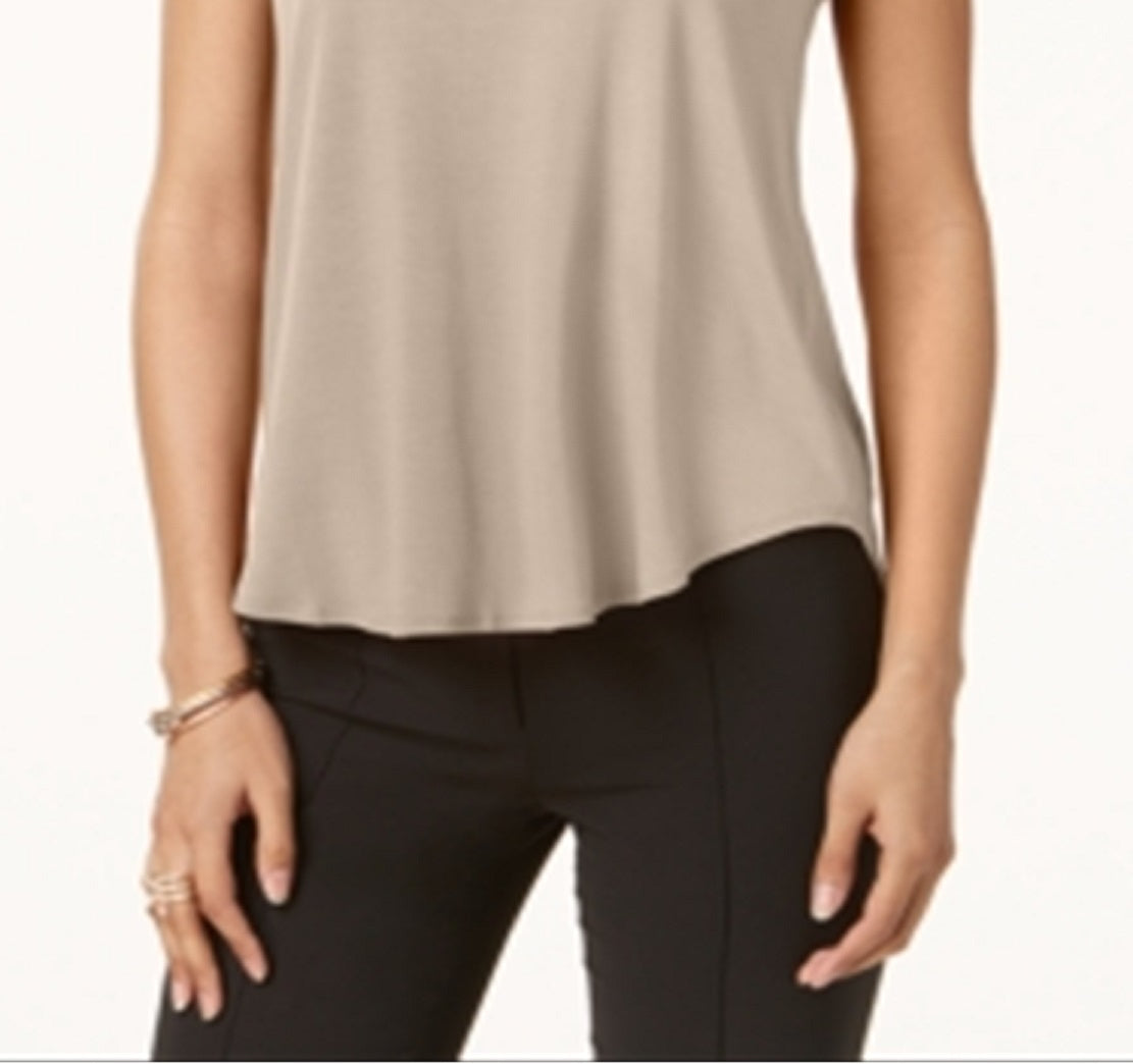 Alfani Women's Satin Trim High Low T-Shirt Brown Size -Petite XL