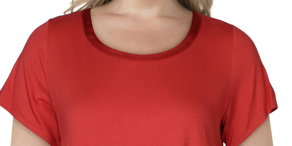 Alfani Women's Satin Trim High Low T-Shirt Red Size 2X