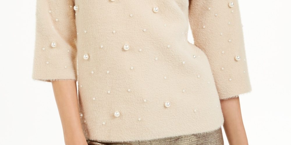 Ask a question about Alfani Women's Scattered Faux Pearl Sweater Beige Size Petite X-Large