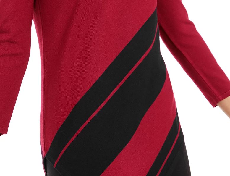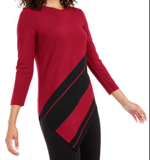 Alfani Women's Striped Asymmetrical Tunic Wine Size Petite Medium