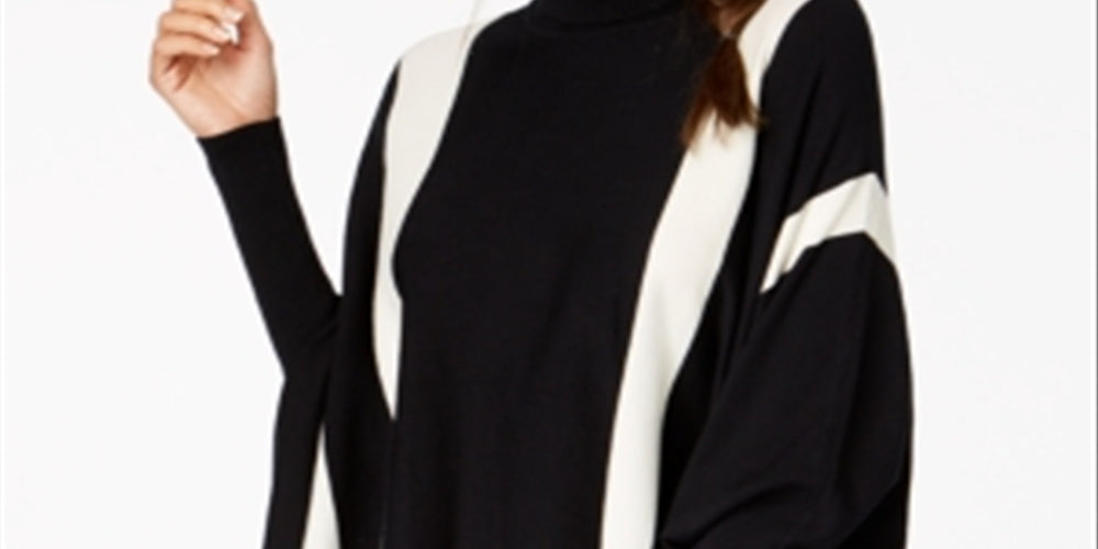 Alfani Women's Striped Poncho Sweater Black Size Medium