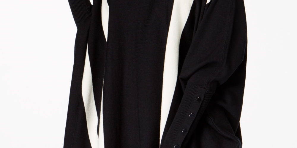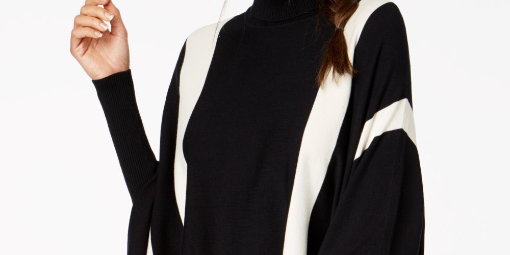 Alfani Women's Striped Poncho Sweater Black Size Petite Small