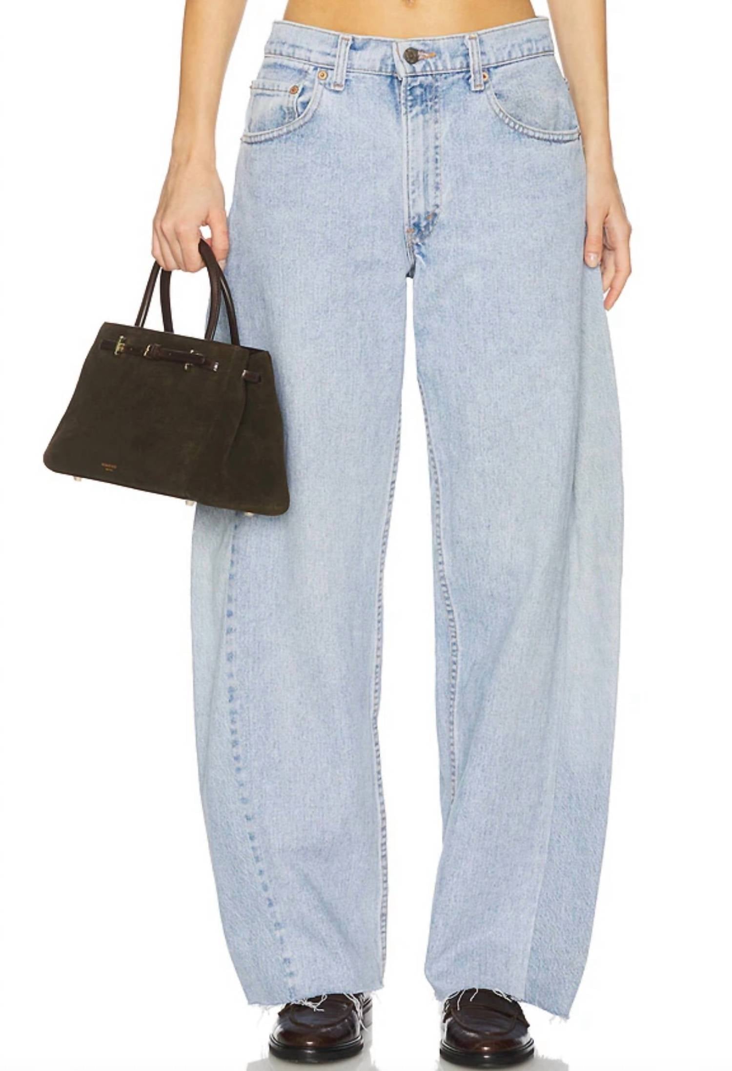 Introducing the Barrel Customs Undone Hem Jeans by Aligrace, a perfect blend of modern style and unique craftsmanship. These women's jeans feature a high rise and wide leg design, complete with a zip fly and button closure for a flattering, relaxed fit. Made from 100% cotton, they offer a light wash finish with a 32" inseam and an 11" rise. Care is easy, simply machine wash to maintain their pristine look and feel.
