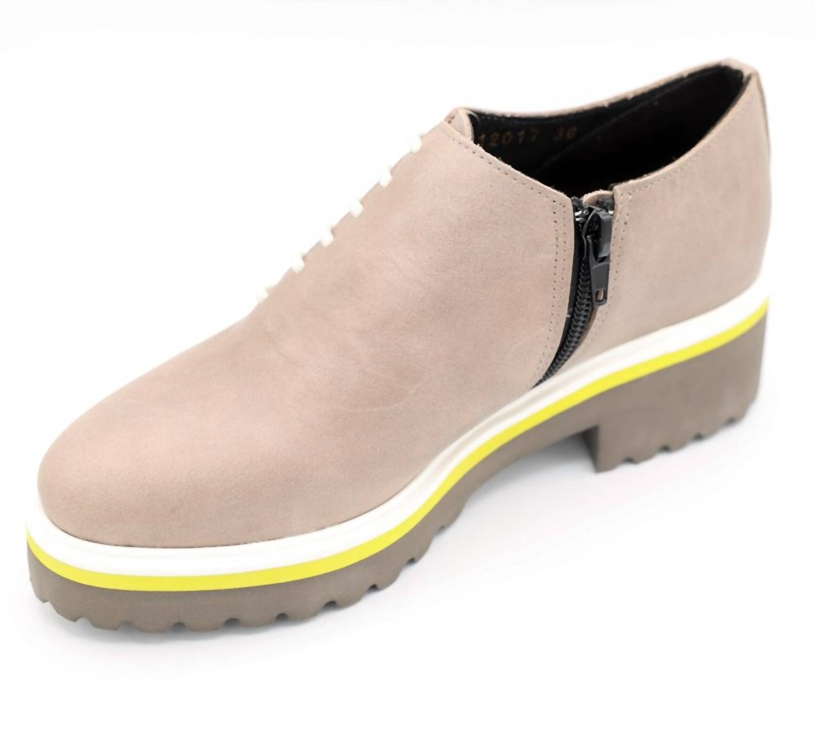 When fashion and function come together seamlessly.Oxford style ladies shoe with side cord detailing. Features an interior zipper for easy access. Cow Leather Upper. Microfiber Lining. Microfiber Insole. Synthetic Outsole.