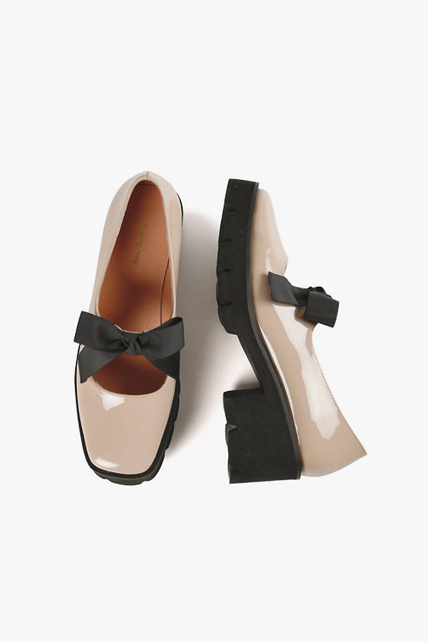 A classic loafer that is both comfortable and polished. Complete your summer wardrobe with the Women's Tap And Lug Loafer by ALL BLACK, a vintage-inspired option that combines trendiness with timeless appeal. Featuring a squared toe and a distinctive bow accent, these beige loafers come with a comfortable block heel with a low height of 1 1/4"-2", perfect for a stylish vacation. The platform design adds a modern touch to this classic flat. Ideal for adult women seeking style and comfort.