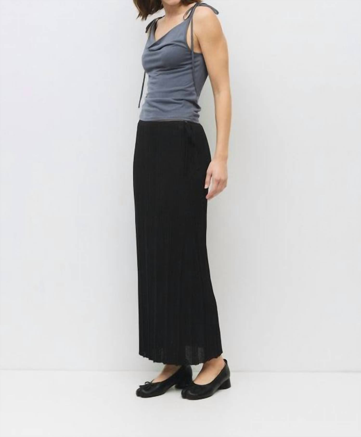 Introducing the Parker Top by all : row, a must-have in sleek charcoal for your spring wardrobe. This sleeveless blouse is crafted from a blend of 70% recycled polyester and 30% polyester, allowing for both comfort and fit. It features a tie closure with delicate shoulder ties and an elegant cowl neckline, perfect for a dinner party. Care: Hand wash.