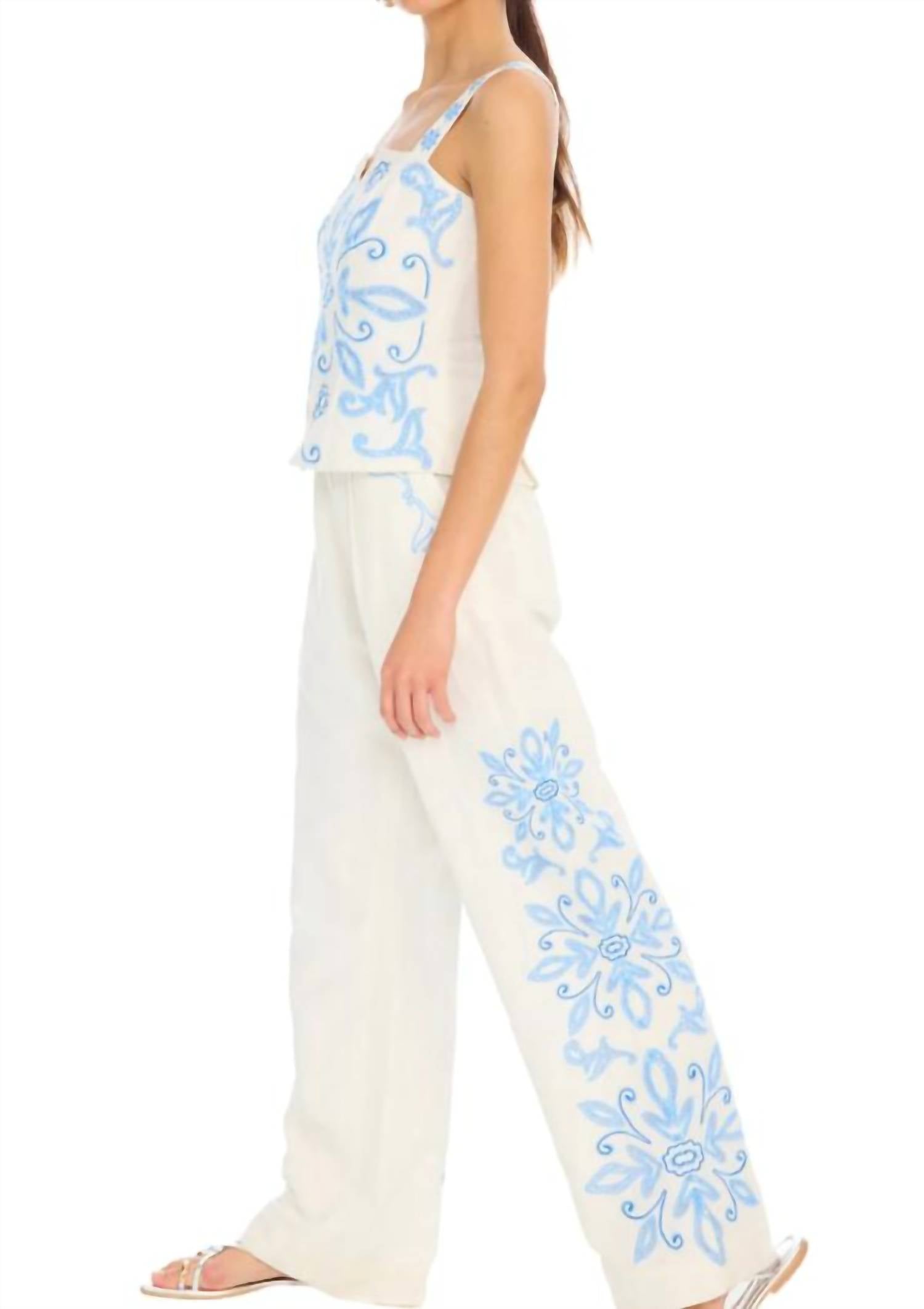 Introducing the Christina Tank by ALLISON NEW YORK, a vibrant addition to your summer wardrobe in blue and white. This women's tank features chic spaghetti straps and a patterned cotton blend material, perfect for housewarming occasions. With a flattering V-neck and a convenient pull-on design, it's a stylish and effortless choice.