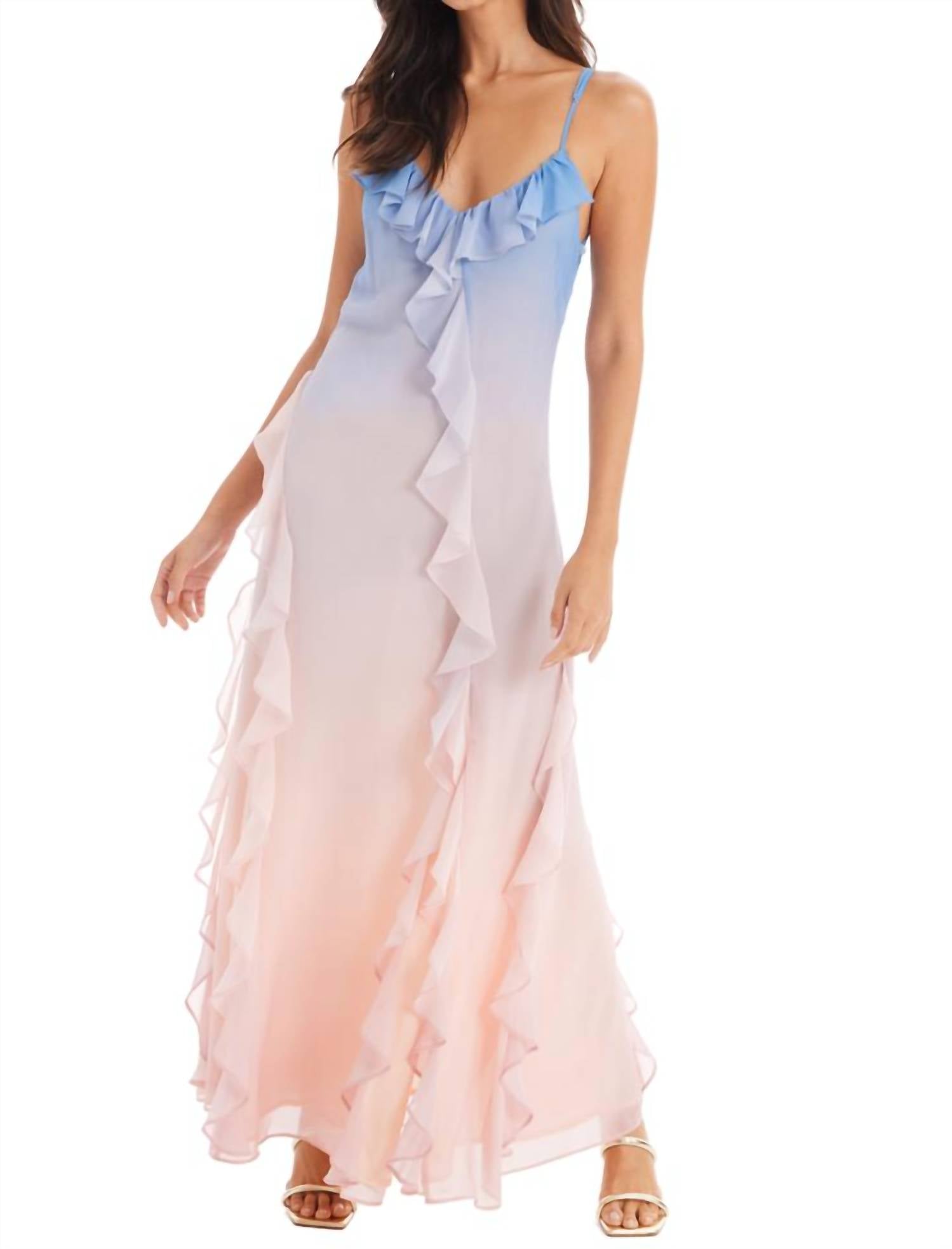 Unveil elegance with the Jackie Ruffle Maxi Dress by ALLISON NEW YORK, a perfect choice for evening events or a special Valentine’s Day celebration. This sheath dress, featuring spaghetti straps and made from 100% polyester chiffon with a 100% rayon lining, boasts a cascade of ruffles and a deep V-neckline to accentuate your silhouette. With a garment length of 58 inches and a pull-on closure, this bias-cut piece fits true to size, complemented by an adjustable strap design. Care instructions are simple: hand wash and lay flat to dry.