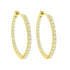 These Women's Sterling Silver Moissanite Inside Out Hinged Hoop Earrings by Allyanna Gifts feature a stunning gold color and boast a bold 36mm diameter with a sleek 2.5mm thickness for an elegant look. Made from sterling silver with gold plating, they offer a fine jewelry experience with a unique inside-out design. The hinged closure ensures comfortable and secure wear, perfect for adding sparkling sophistication to any outfit.