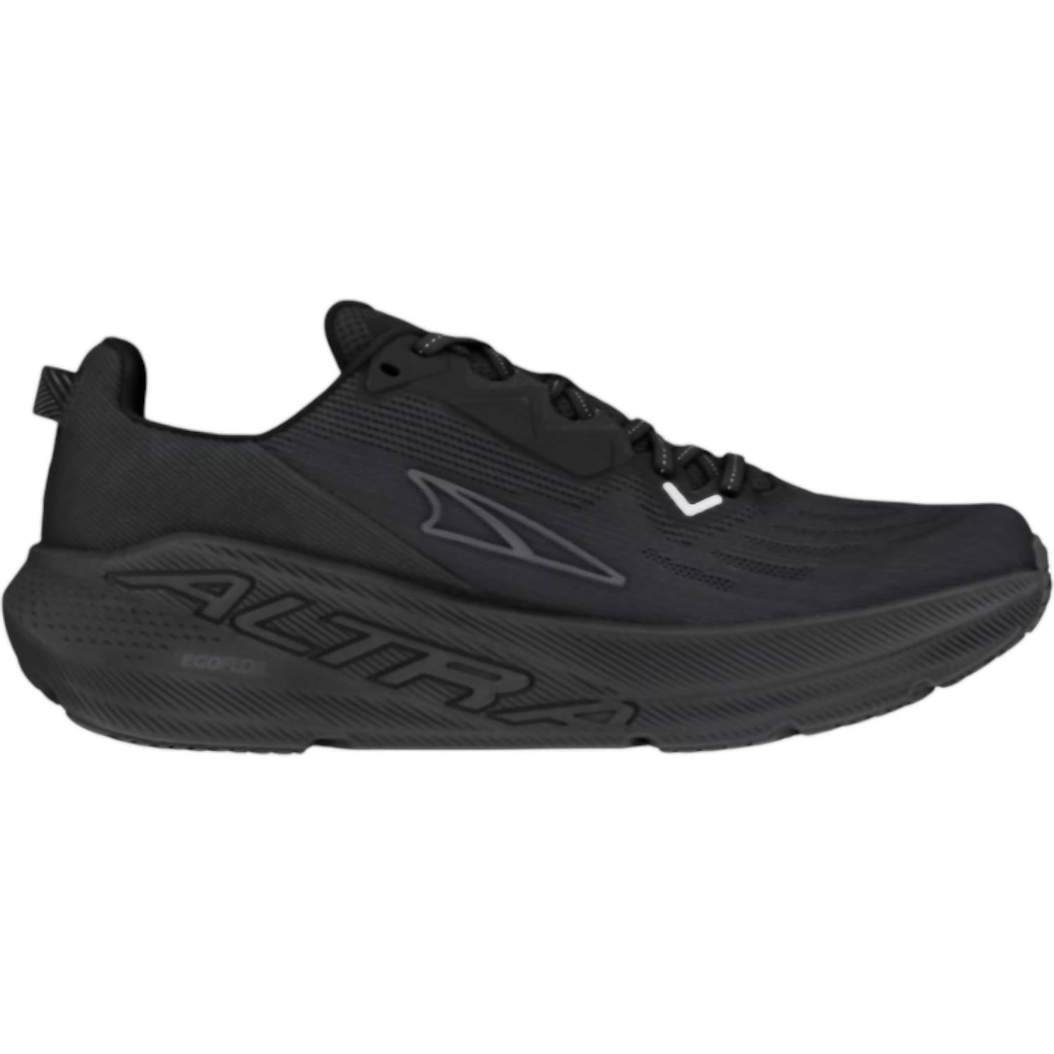 Experience ultimate performance with the Men's Fwd Via Shoes by ALTRA, crafted for both fitness and athleisure pursuits. These athletic shoes feature a sleek black-on-black design and are engineered with a supercritical midsole foam, ALTRA EGO™ FLO, infused with nitrogen for a lightweight and responsive feel. The round toe design ensures comfort, while the engineered spacer mesh upper enhances breathability. Embrace the efficiency of the low 4mm drop and rocker shape geometry for a smooth, forward-propelling stride. Ideal for those seeking lightweight comfort and a roomy toe box for natural foot movement.