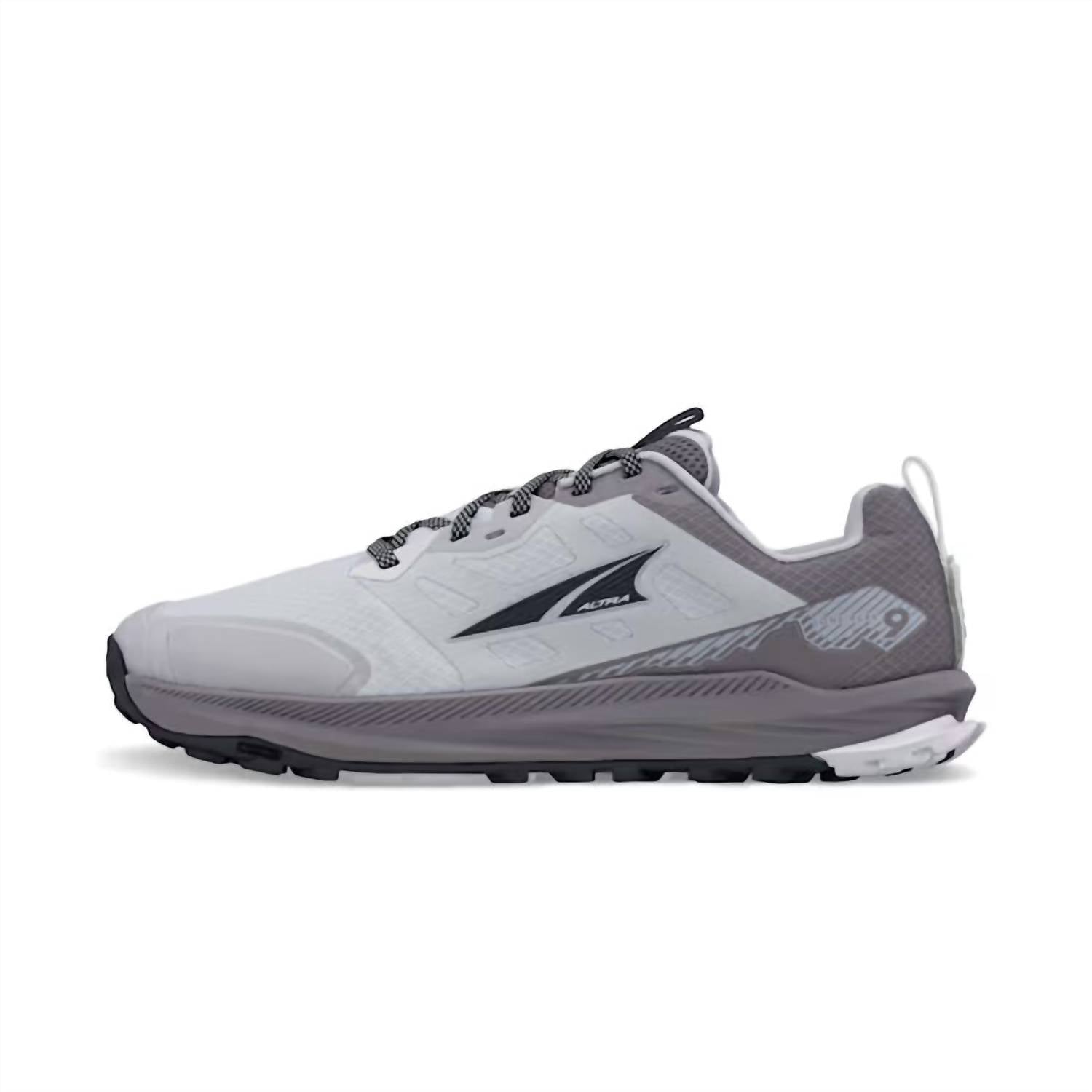 Introducing the Men's Lone Peak Nine by ALTRA, the ultimate choice for your trail adventures. Crafted with a 100% recycled ripstop mesh upper and enhanced by no-sew overlays, this sneaker offers unmatched durability for high-mileage treks. The shoe features ALTRA's EGO™ midsole for unparalleled comfort and a MaxTrac™ outsole for superior grip. Weighing in at just 11.15 oz (316 g) and with a neutral support, these sneakers offer a comfortable zero-drop experience and are perfect for trail running, hiking, and more. Complete with a round toe and medium width, they boast a mid cushion with a stack height of 25mm, all in a stylish gray hue ideal for summer vacations.