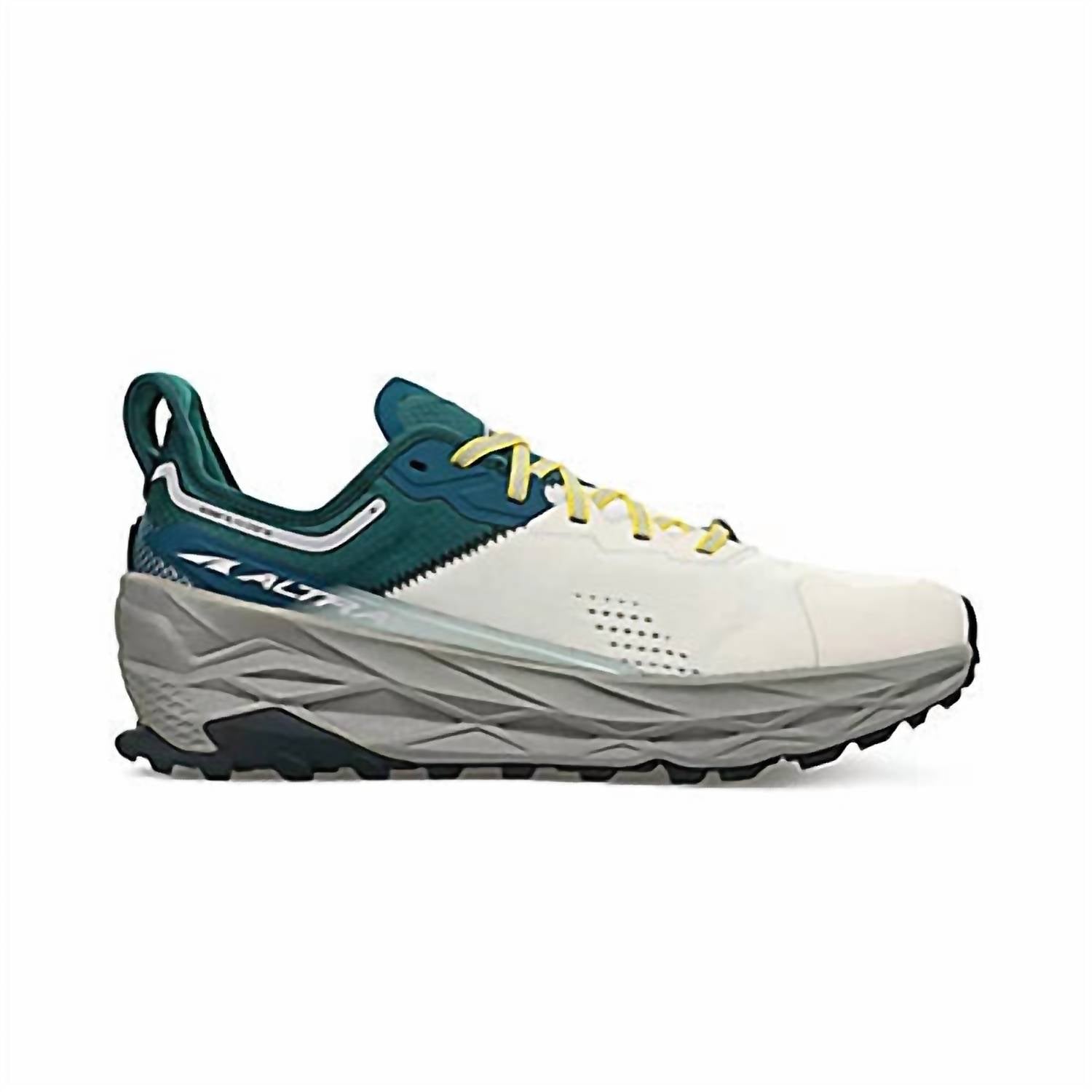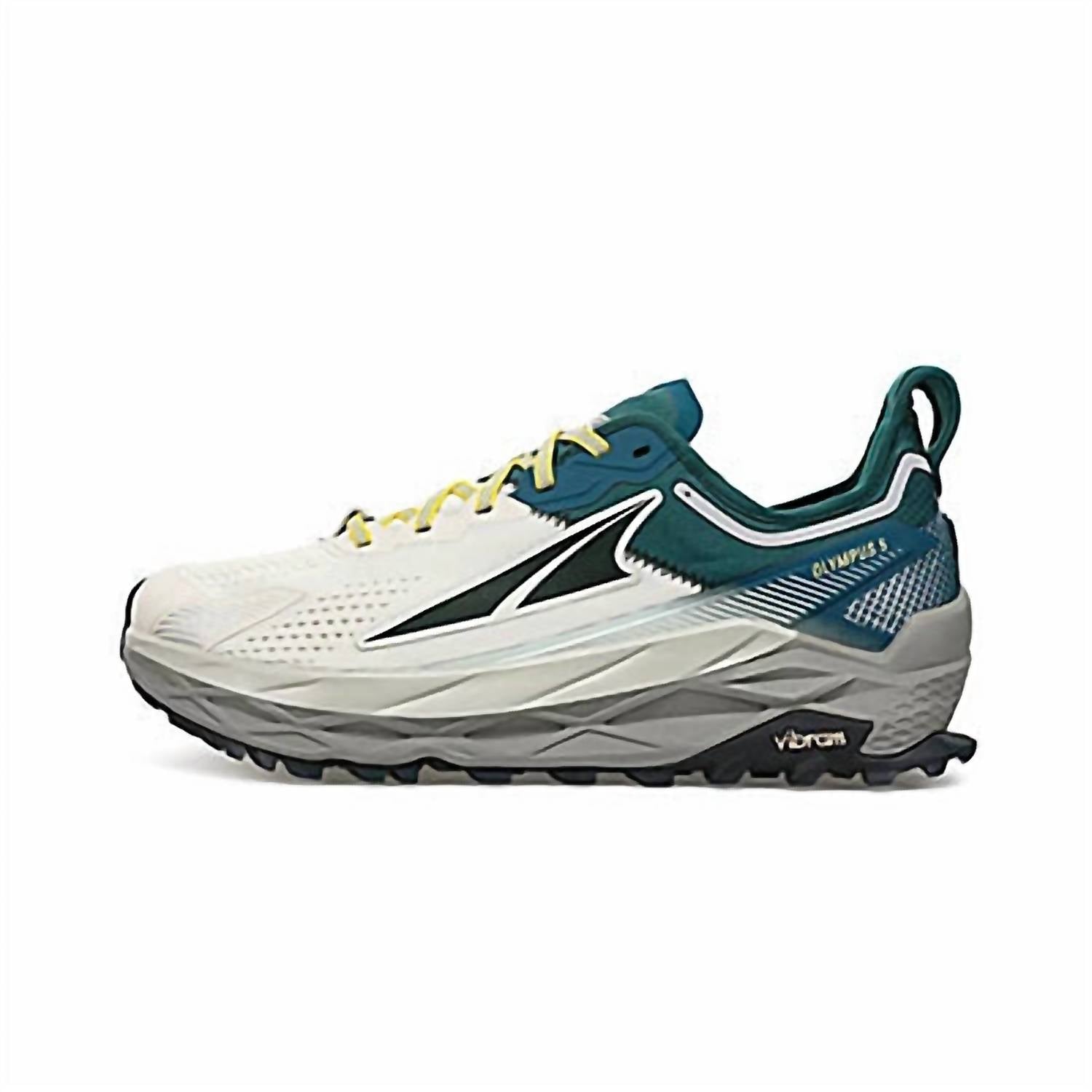Introducing the ALTRA Men's Olympus 5 Running Shoes, a must-have for trail enthusiasts seeking top performance in Grey Teal. With a durable engineered mesh upper and a midsole crafted from compression molded EVA, these shoes promise breathability and cushioning. The Vibram® Megagrip outsole ensures superior traction, while the Original FootShape™ Fit offers natural foot placement. Weighing just 12.3 oz (350 g) and boasting a stack height of 33 mm, they are designed for comfort without compromising on grip and stability.
