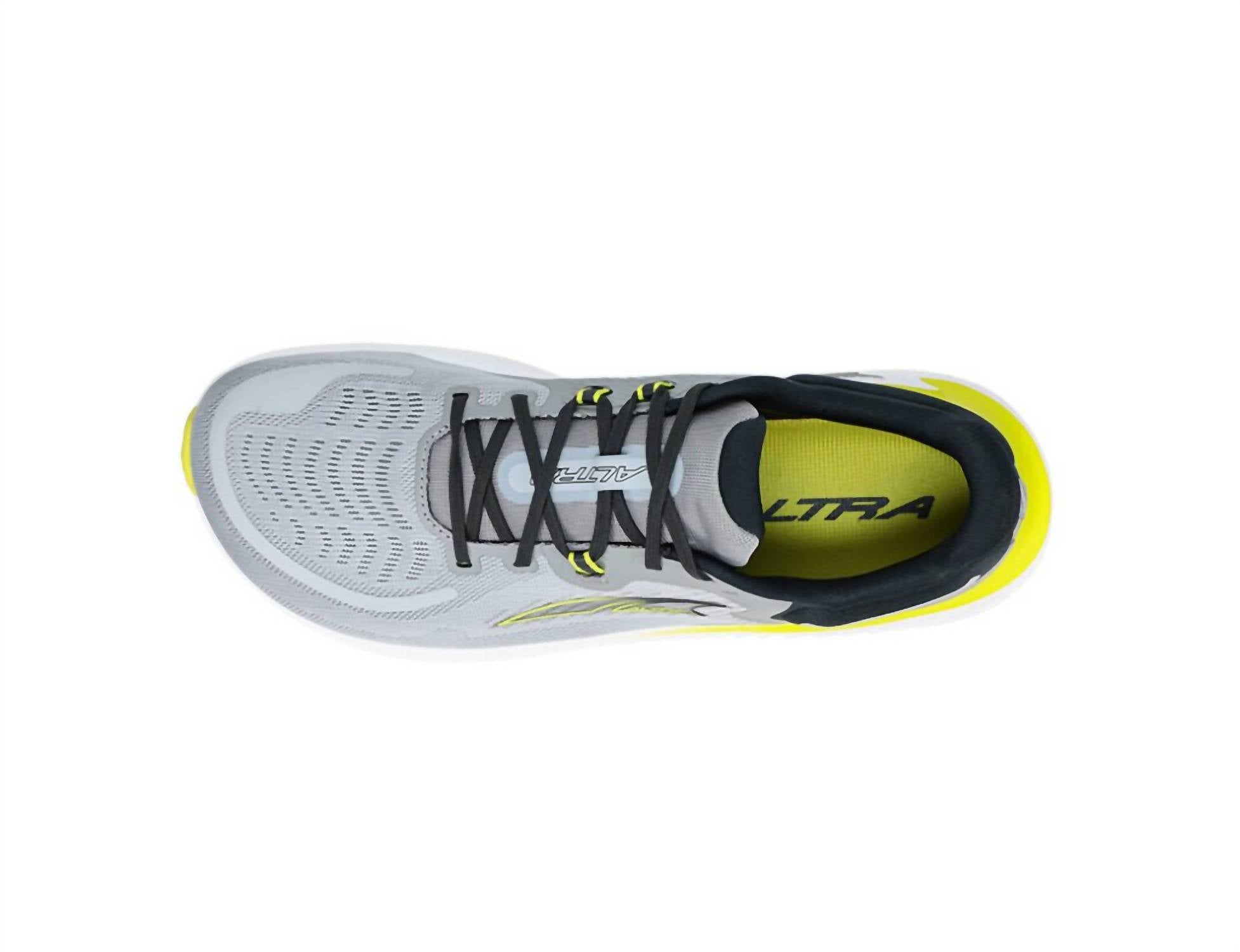 Introducing the ALTRA Men's Paradigm 7 Road Running Shoes in a striking Gray/Lime color combination, perfect for fitness enthusiasts and athleisure trends. With an engineered mesh upper, these shoes offer breathability and feature ghillie lacing for a secure fit. Enjoy a plush ride with 30 mm of lightweight Altra EGO™ MAX midsole foam and a FootPod™ outsole for optimal cushioning. Designed with a Standard FootShape™ and GuideRail™ technology for natural foot positioning and necessary support, these shoes weigh 10.35 oz (293.4 g) and feature a stack height of 30 mm with a zero-drop design.
