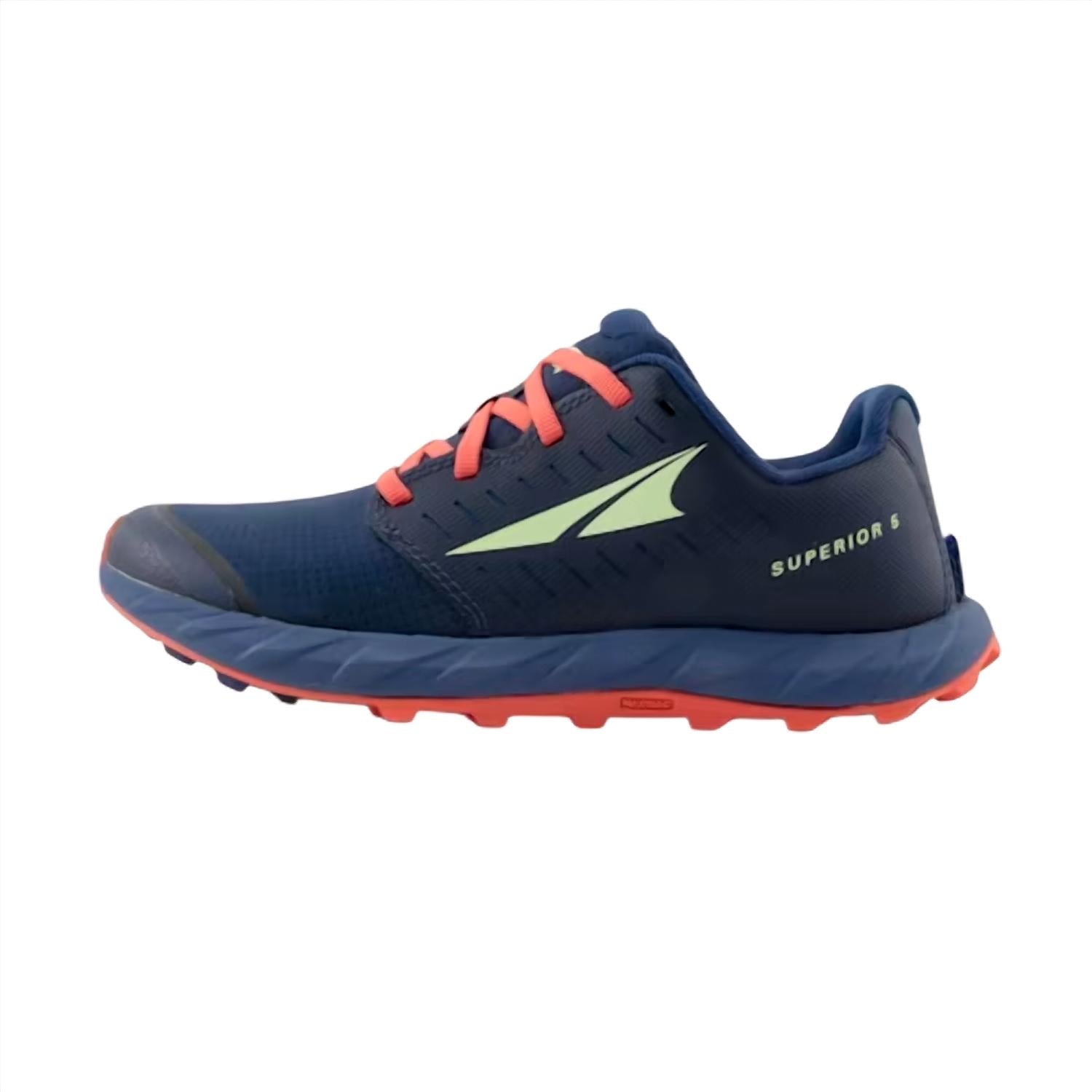 Workout in style with these adorable athletic sneakers. The Altra Superior 5 for women features a lightweight, breathable upper with moisture-wicking. The removable StoneGuard is lighter, while the responsive Quantic midsole provides cushioning. The MaxTrac outsole offers durability and grip with a multi-directional pattern. A curved heel allows for smooth movement in all directions during trail runs.