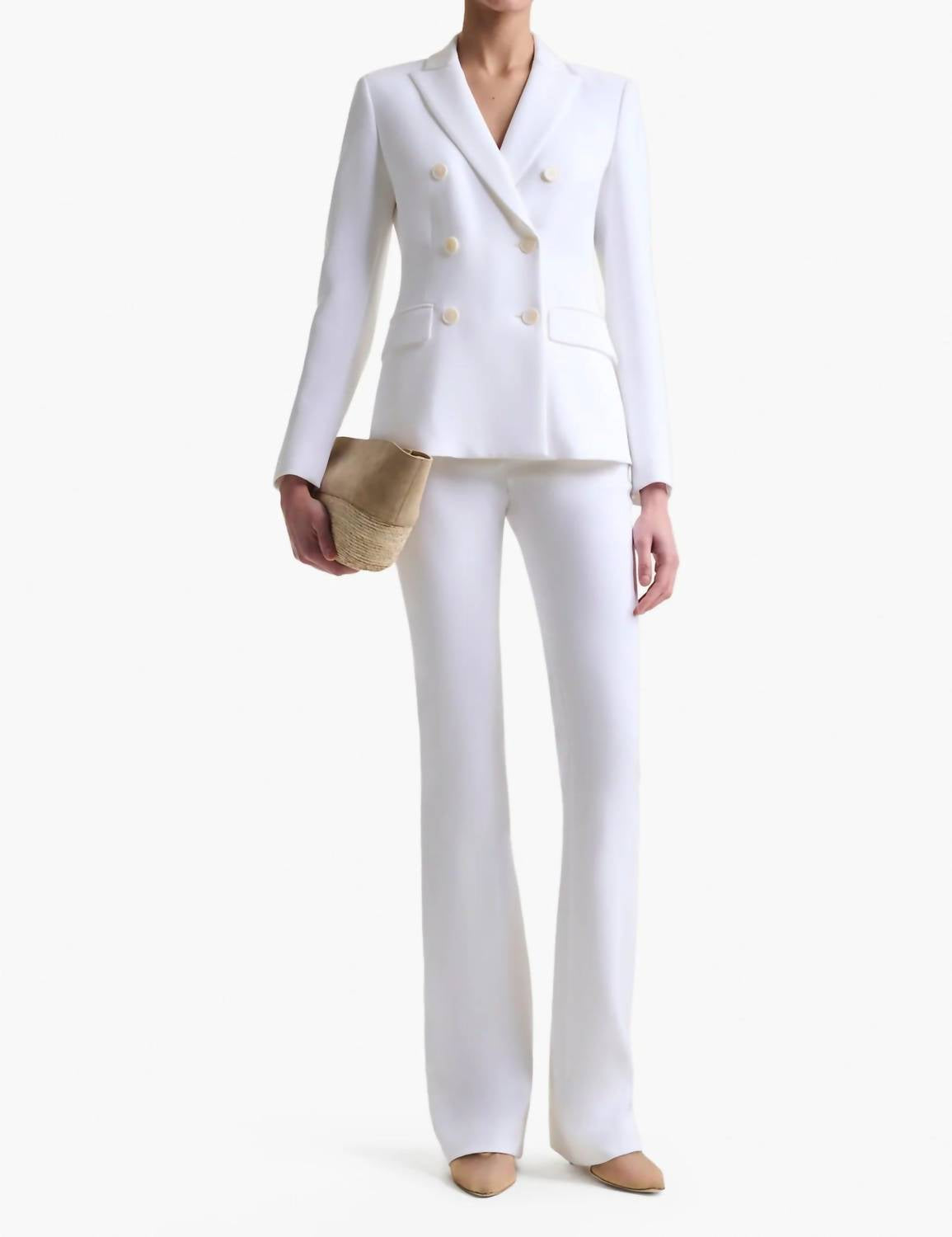 Discover the Serge Mid-rise Bootcut Pant by ALTUZARRA, an elegant choice for the modern wardrobe. Featuring a sleek bootcut leg, this optic white piece is crafted from stripe-patterned crease-resistant fabric composed of 69% Triacetate and 31% Polyester and includes front jet pockets for a minimalist touch. Originating from Italy, these pants offer a regular fit with a mid-rise waist and convenient zip closure. Care is simple with machine wash and lay flat to dry instructions.
