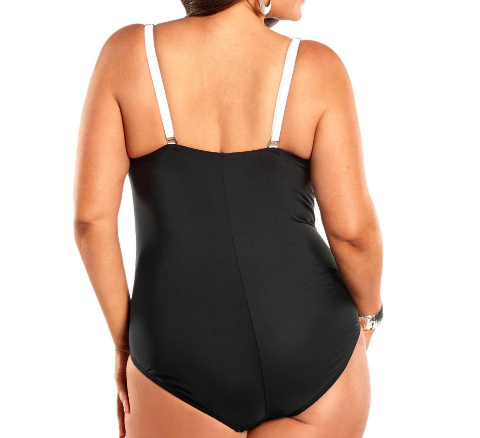 Designed to perfection and fit to flatter. You are going to love this one piece swimsuit.This adjustable straps can be worn directly over the shoulder or crossed in the back. Bust support, comfortable foam cups. Criss cross detail at the bustline. Front lined with power mesh. Side ruching. Foam cups criss cross bust detail power mesh front lined front ruching side seam measure.