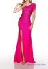 Elevate your prom look with the One-shoulder Hot Stone Accent Gown by ALYCE PARIS, a striking piece in elegant Electric Fuchsia. This sleeveless, fitted dress features stunning hot stone accents and delicate feathers, highlighted by a one-shoulder detail and an alluring high leg slit. Crafted from Power Jersey, it offers an open back and a convenient zip closure for a perfect fit. Ideal for making a statement at any special event.