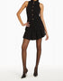 Experience timeless elegance with the Evelyn Skort Romper by Amanda Uprichard, a chic addition to any wardrobe. This black mock neck vest romper is adorned with six gold buttons and features flap pockets for a sophisticated touch. Designed with a pleated skirt and built-in shorts, it effortlessly combines style with practicality. Made entirely from polyester, it closes with an invisible zipper and requires dry cleaning to maintain its polished look.