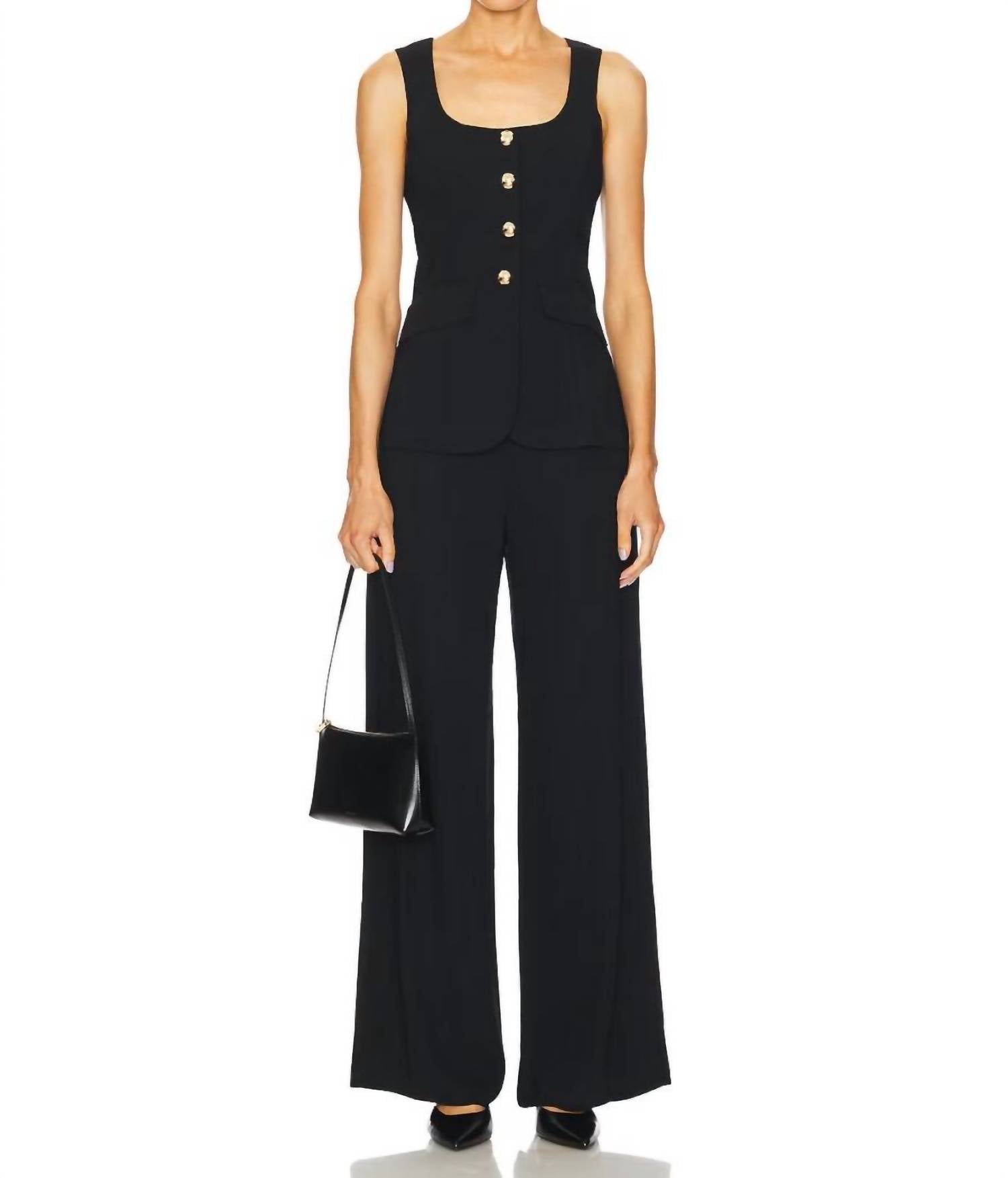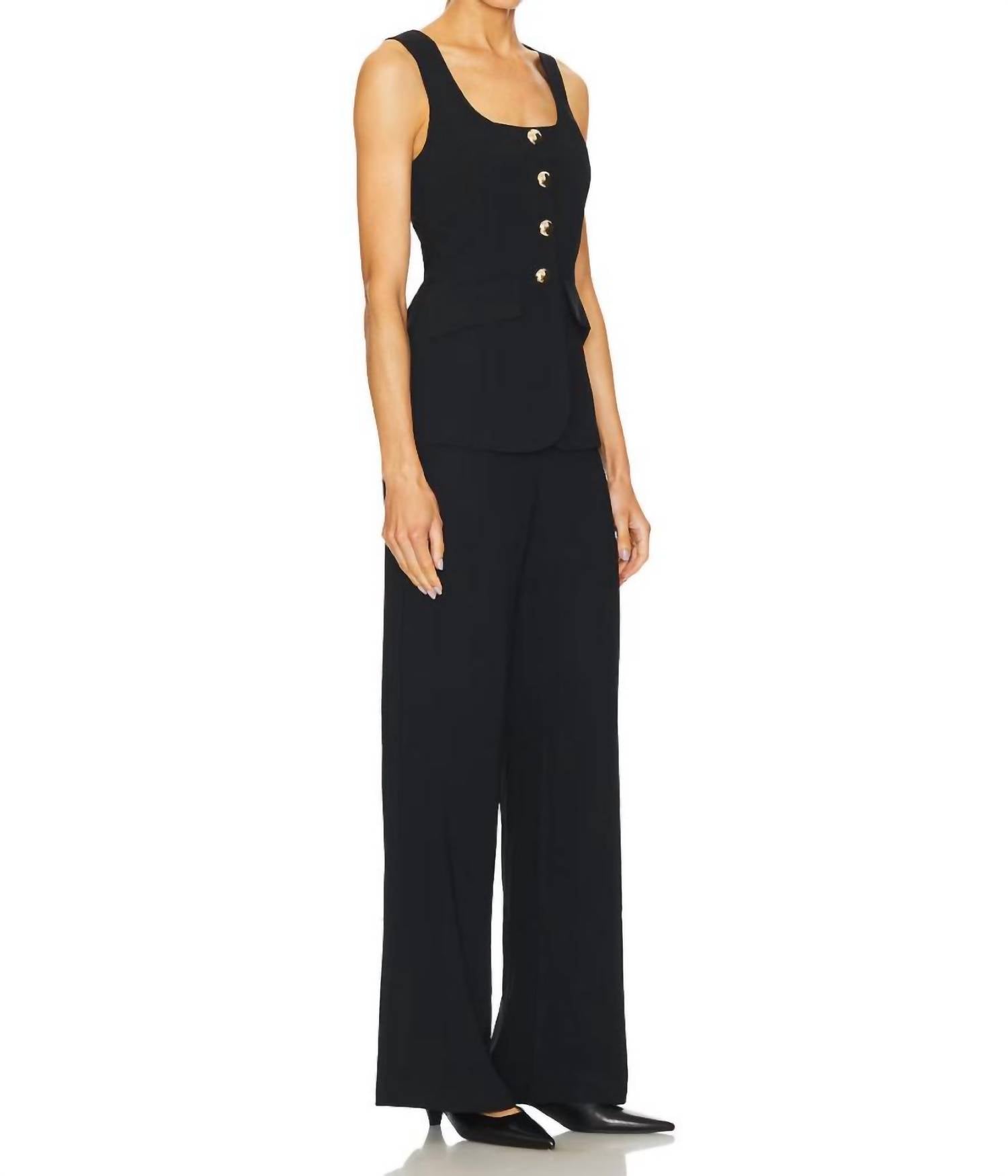 It doesn't take much for this one piece to look effortlessly cool. Add some statement jewelry to dress it up, or throw on some sneakers for a more casual vibe. Experience the effortless elegance. Crafted entirely from 100% polyester for a sleek and sophisticated look. Features a versatile black hue and a relaxed fit that stays true to size. Enhanced by the crepe fabric's refined texture. Includes both a front button closure and a hidden side zipper. Complete with a chic faux flap pocket design. For care, ensure to dry clean only to maintain its impeccable appearance.