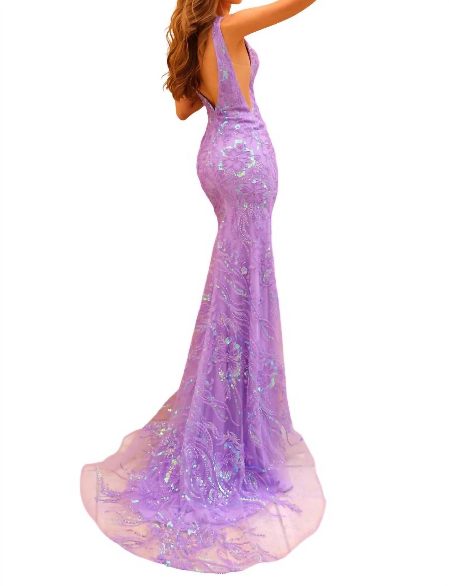 Turn heads in the cutest and most flattering evening dress. This elegant gown features luxurious tulle adorned with sparkling sequin appliqué for a stunning, eye-catching look. The V-neckline and fit-and-flare silhouette highlight your figure, while illusion side cutouts add a modern, sophisticated touch. Finished with a graceful V-back and a flowing sweep train, it’s designed to make a memorable statement on your special day.