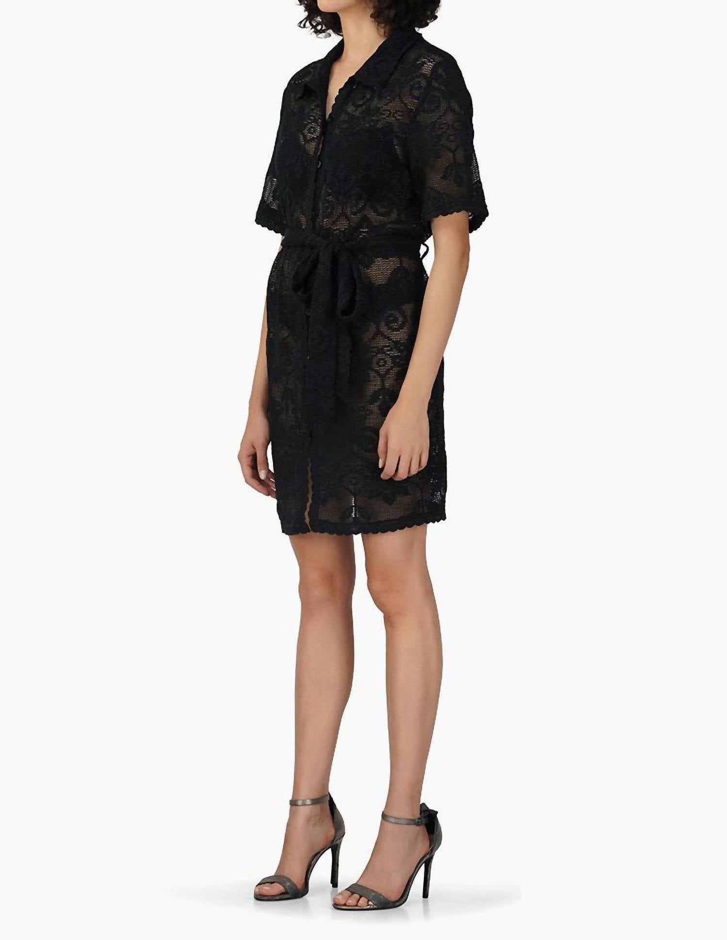 A short and breezy dress for those warmer days. Introducing the Black Crochet Shirt Dress by America & Beyond, a perfect choice for beach days and summer outings. This boho-chic mini dress is crafted in textured cotton and features a classic collar with short sleeves. Its shirt silhouette is enhanced by a convenient button closure, offering effortless style and comfort. Be ready for sunny adventures in this stylish and versatile piece.