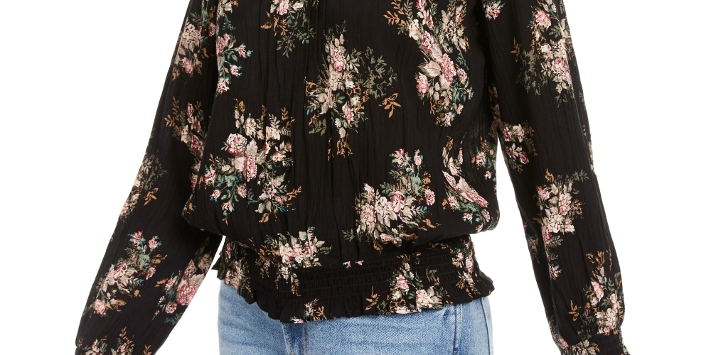 American Rag Junior's Lace Trimmed Smocked Waist Blouse White Size Small