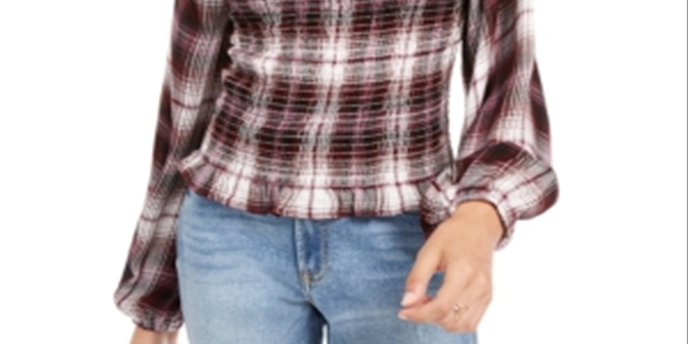 American Rag Junior's Printed Smocked Poet Sleeved Blouse Red Size Medium