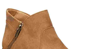 1 1/2" block heel|Round-toe booties with double side zipper detail|Available in Medium(M) and Wide(W)|Manmade/suede upper; manmade sole|Imported