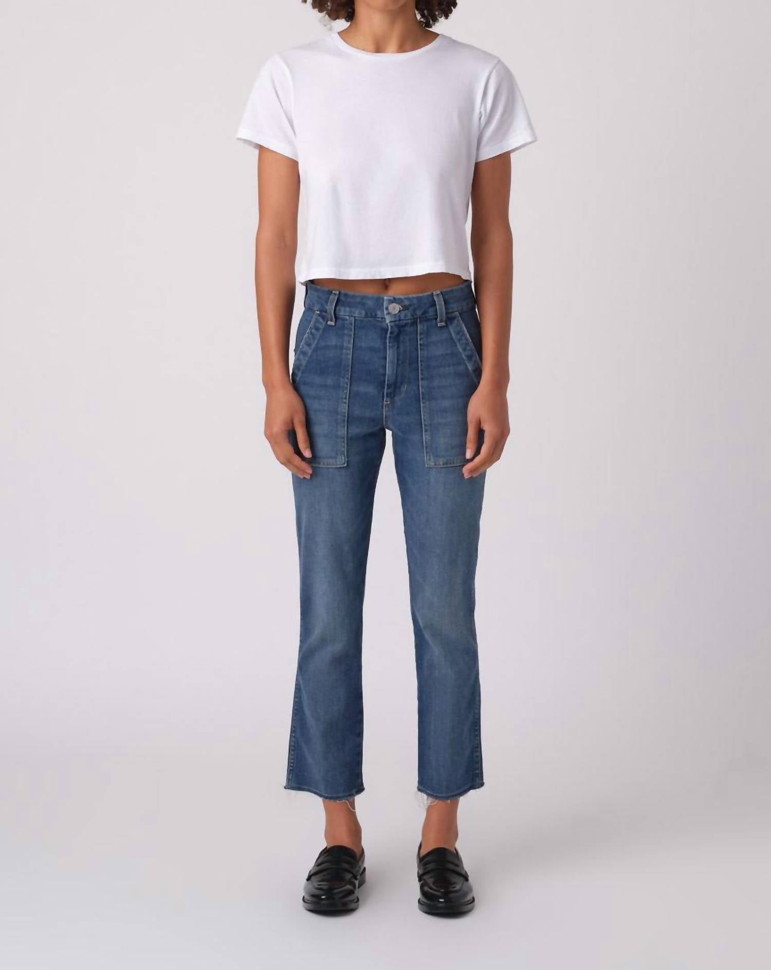 Introducing AMO's Easy Army Trouser in the elegant shade of Graceful, blending streetwear trendiness with laid-back sophistication. These trousers feature a relaxed fit with a slightly dropped crotch, straight wide leg, and a rise of 10.75 inches that hits just above the ankle, making them perfect for summer occasions like dinner parties. Made from a 98% Cotton, 2% Elastane blend, they come equipped with both front and back army patch-style pockets and a convenient zip closure. Care for these solid-patterned trousers is straightforward with machine wash and line dry instructions.