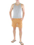Mid-rise waist for comfort | Made from soft chino fabric | Versatile khaki color | Classic short length | Features button closure | Has two side pockets | Comes with a back pocket | Belt loops for added functionality | Easy to maintain and clean | Ideal for casual wear'