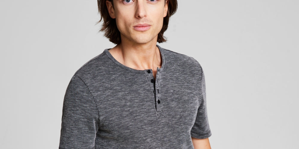 And Now This Men's Soft Knit Henley Gray Size Small
