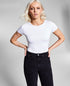 A casual crewneck tops off this curve-hugging bodysuit from And Now This| designed with short sleeves and perfect with your favorite denim.| Crewneck; snap closure at gusset| Elasticized rubber at leg openings| Polyester/spandex| Machine washable