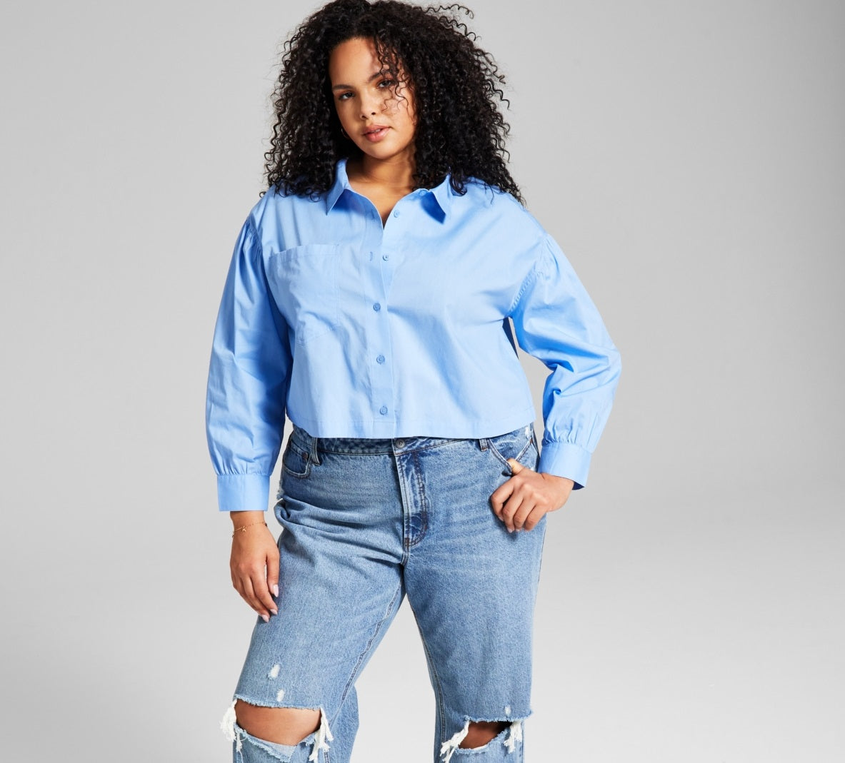 And Now This Women's Cotton Button Front Top Blue Size 4X