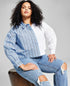 A modern take on the button-up with a two-toned design and cropped fit| this comfortable cotton plus size look by And Now This is perfect for off-duty days.| Point collar; button-front closures| Patch pocket at chest| Drop shoulder long puff sleeves; buttoned cuffs| Length 21.75 for size 2X| 100% cotton