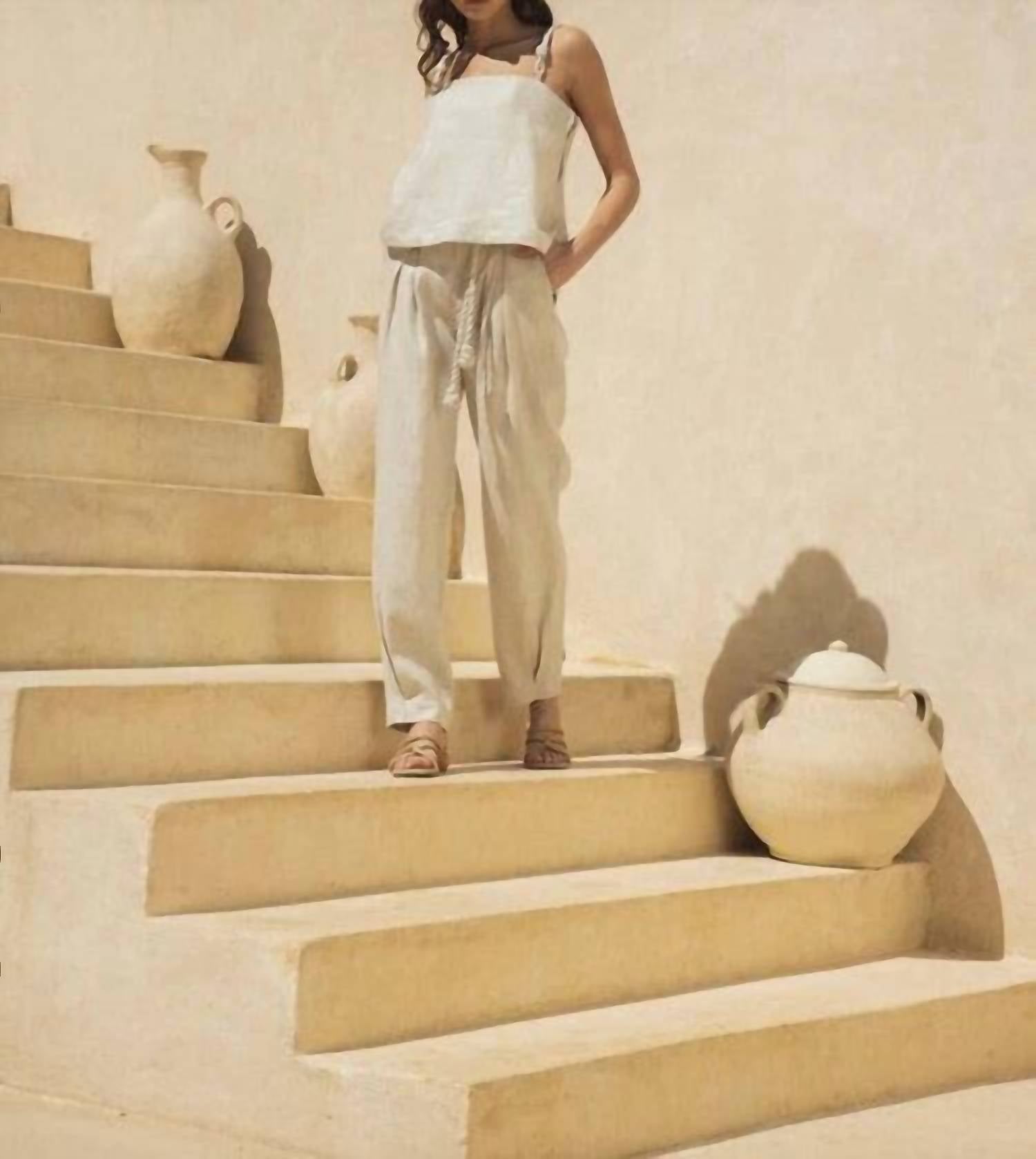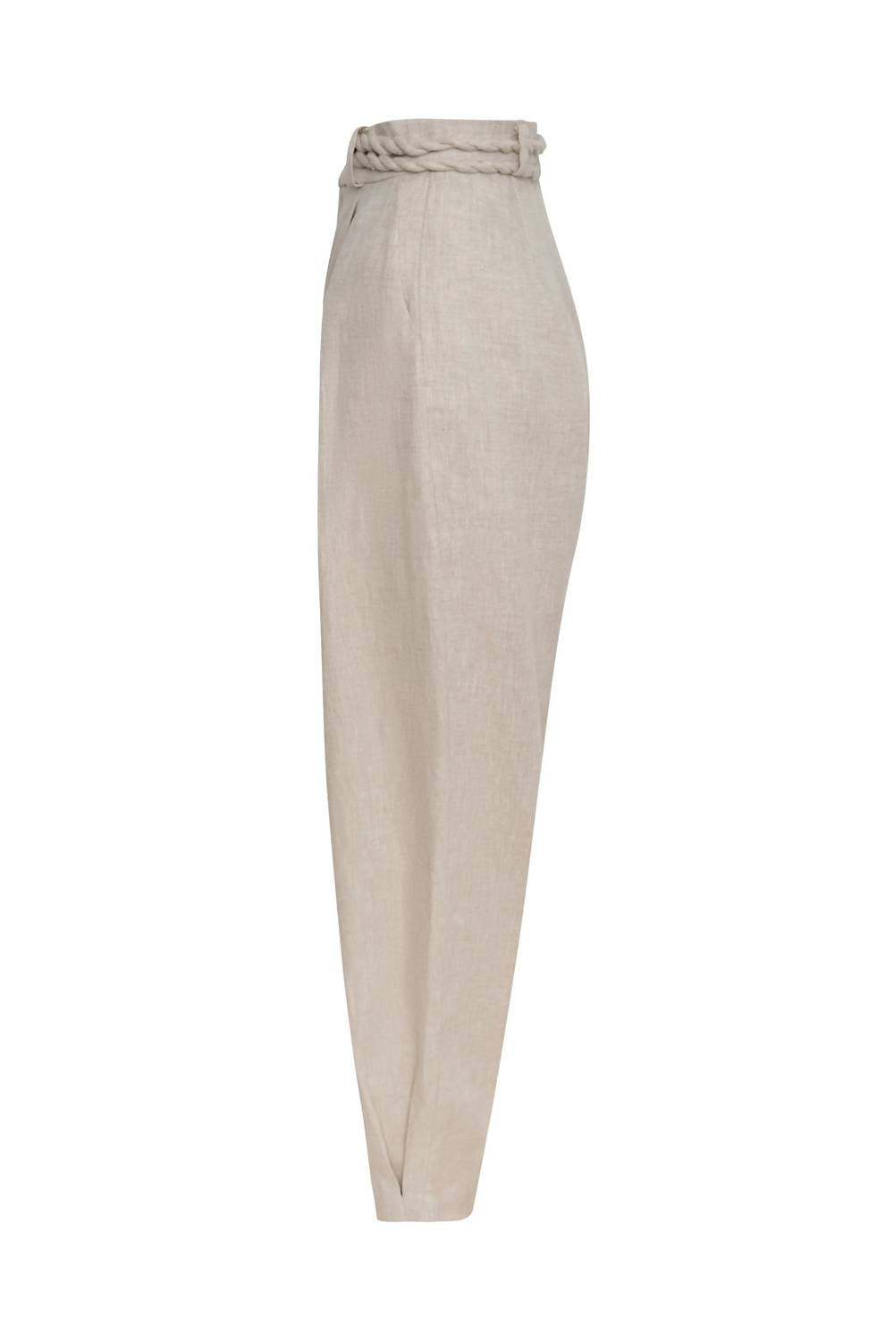 Upgrade your wardrobe with these cropped pants, designed to merge sophistication and wearability. The tailored fit ensures ultimate comfort during long days or nights out. Presenting the Women's Una Vida Fitted Ankle Pants by Andres Otalora, a blend of freshness and elegance perfect for any occasion. Crafted from 100% Linen in a refined oatmeal hue, these pants boast a mid-rise, classic fit with tapered legs and a chic snap closure. Thoughtfully designed in Colombia, they feature fitted ankles and a knotted belt, adding a touch of timeless Indian craftsmanship. Care for these pants by hand washing and laying flat to dry, ensuring they remain a staple piece in your wardrobe.