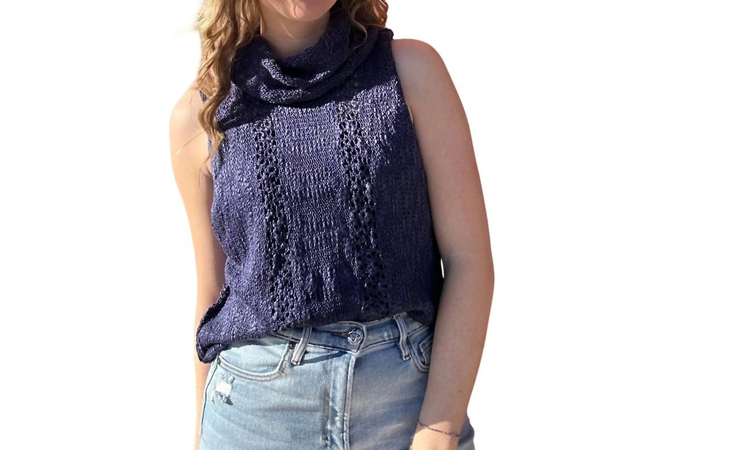 Fit, fabric and functionality. This tank top checks all the boxes. Introducing the Midnight Blue Knit Tank by ANGIE, a fashion-forward piece perfect for any dinner party or casual gathering. This sleeveless tank showcases a trendy cowlneck and is crafted from patterned knit fabric, ensuring both style and comfort. Designed with a convenient pull-on closure, it's an effortless addition to your spring wardrobe for Hanukkah and beyond. With no pockets to interrupt its sleek silhouette, this tank is a versatile must-have.