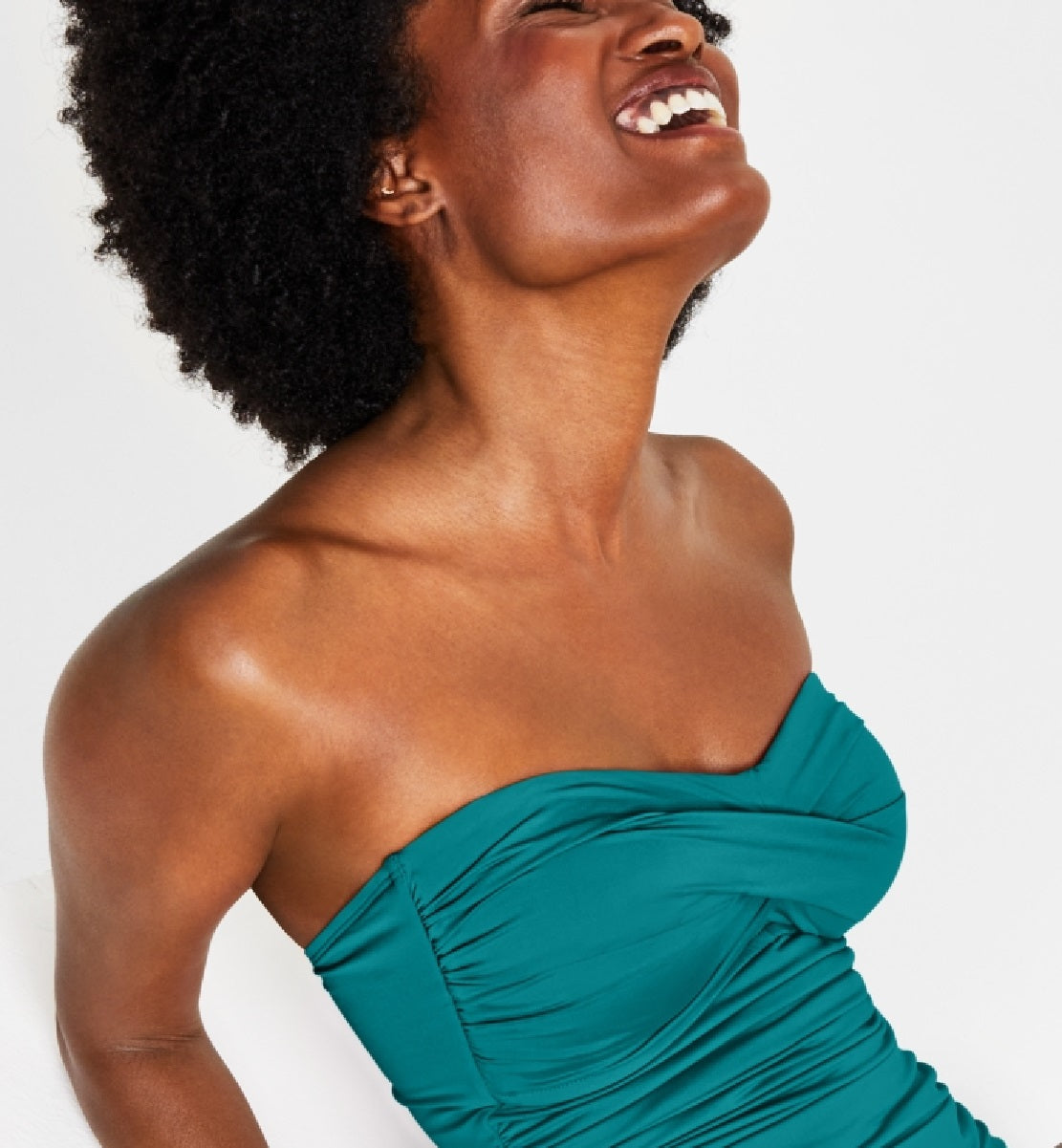Non-removable cups|Pull on styling; adjustable removable straps|Sweetheart neckline with twist; ruched sides|Imported|Lined|Moderate bottom coverage|Connect with a stylist & get free expert advice online or in stores for your wardrobe