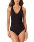 Get sleek at the beach with a refined one-piece swimsuit from Anne Cole featuring wide crisscrossing straps in back.| Removable cups| Full bottom coverage| Adjustable straps with hardware rings crisscross at back; pull-on styling| V-neck| Ruched at sides| Lined