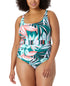 Anne Cole Women's Zesty Tropical Belted Scoop Neck One Piece Swimsuit Multi Size 16W