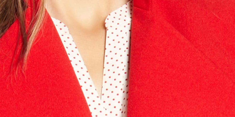 Anne Klein plays with movement on fabulous blazer sporting a cascading lapel at its open front| A softly curving overlay adds dimension in front of its padded shoulders