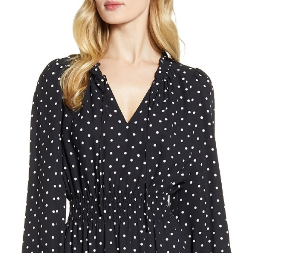 Anne Klein Women's Dot Print Smocked Waist Dress Black Size X-Small