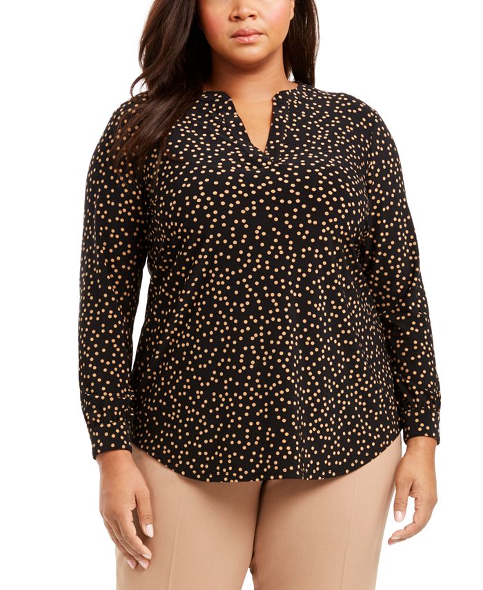 Anne Klein Women's Dot Split Neck Knit Pullover Blouse Black Size 0X