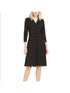 Anne Klein Women's Polka Dot 3/4 Sleeve V Neck Knee Length Fit Flare Dress Black Size Large
